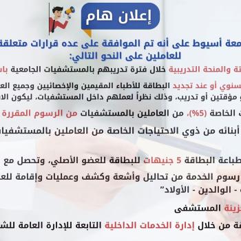 تأتي هذه الخدمة انطلاقا من حرص مستشفيات جامعة أسيوط على تقديم كافة أوجه الرعاية الطبية والعلاجية…