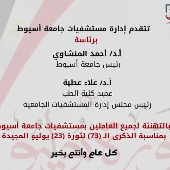 تهنئة بمناسبة الذكري 73 لثورة 23 يوليو المجيدة