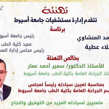 تهنئة الأستاذ الدكتور سمير أحمد عمار لتعيين سيادته رئيساً لمجلس قسم الجراحة العامة