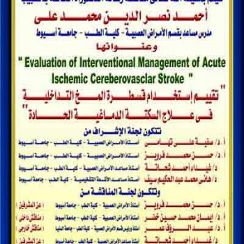 سيتم بمشئة الله تعالي مناقشة رسالة الدكتوراه الخاصة بالطبيب / احمد نصرالدين محمد علي