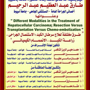 سيتم بمشيئة الله تعالي مناقشة رسالة الدكتوراة الخاصة بالطبيب طارق عبد العظيم عبد الرحيم اخصائي…