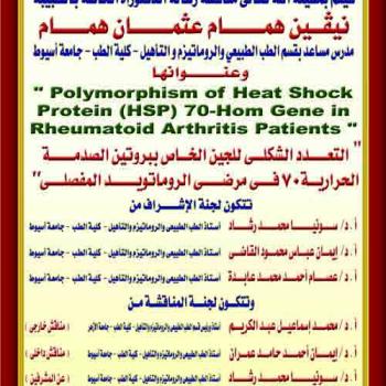 بمشيئة الله مناقشة رسالة الدكتوراه الخاصة بالطبيب/ عصام محمد عبد العزيز- مدرسمساعد بقسم أمراض…
