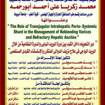 سيتم بمشيئة الله تعالي مناقشة رسالة الدكتوراة الخاصة بالطبيب محمد زكريا علي احمد