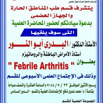 يتشرف قسم طب المناطق الحارة والجهاز الهضمي بدعوة سيادتكم لحضور المحاضرة العلمية التي سوف يقيمها…