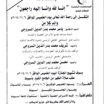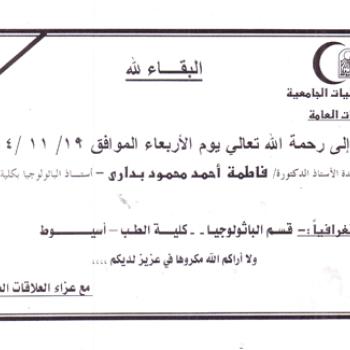 توفيت الى رحمة الله تعالى شقيقة كلا من :أ.د/احمد محمد عبد المنعم الأستاذ بقسم المسالك البولية …