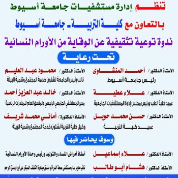 مستشفيات جامعة أسيوط بالتعاون مع كلية التربية تنظم ندوة توعوية حول الوقاية من الأورام السرطانية لدى النساء