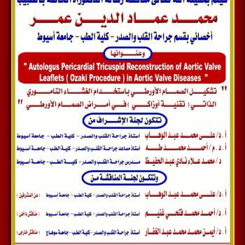 مناقشة رسالة الدكتوراه الخاصة بالطبيب / محمد عماد الدين عمر - أخصائي بقسم جراحة القلب والصدر - كلية الطب - جامعة أسيوط