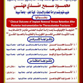 مناقشة رسالة الماجستير الخاصة بالطبيب / محمود سمير مندي مهني - طبيب مقيم بقسم جراحة العظام و الإصابات - كلية الطب - جامعة أسيوط