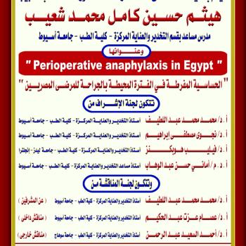 مناقشة رسالة الدكتوراه الخاصة بالطبيب / هيثم حسين كامل محمد شعيب - مدرس مساعد بقسم التخدير والعناية المركزة - كلية الطب - جامعة أسيوط