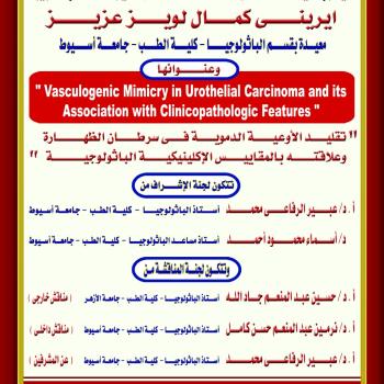 مناقشة رسالة الماجستير الخاصة بالطبيبة / إيرينى كمال لويز عزيز - معيدة بقسم الباثولوجيا - كلية الطب - جامعة أسيوط