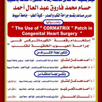 مناقشة رسالة الدكتوراه الخاصة بالطبيب / حسام محمد فاروق عبد العال أحمد - مدرس مساعد بقسم جراحة القلب والصدر - كلية الطب - جامعة أسيوط