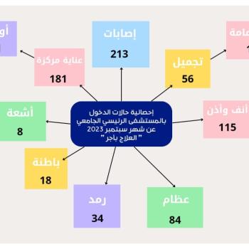 خلال شهر سبتمبر الماضي.. المستشفى الرئيسي بجامعة أسيوط يسجل ١٠٠٤ حالة دخول بمختلف الأقسام المصدر…
