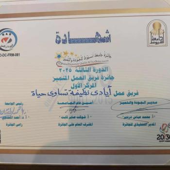 إدارة مكافحة العدوى بمستشفيات جامعة أسيوط تحصد المركز الأول في جائزة الجودة والتميز بجامعة أسيوط