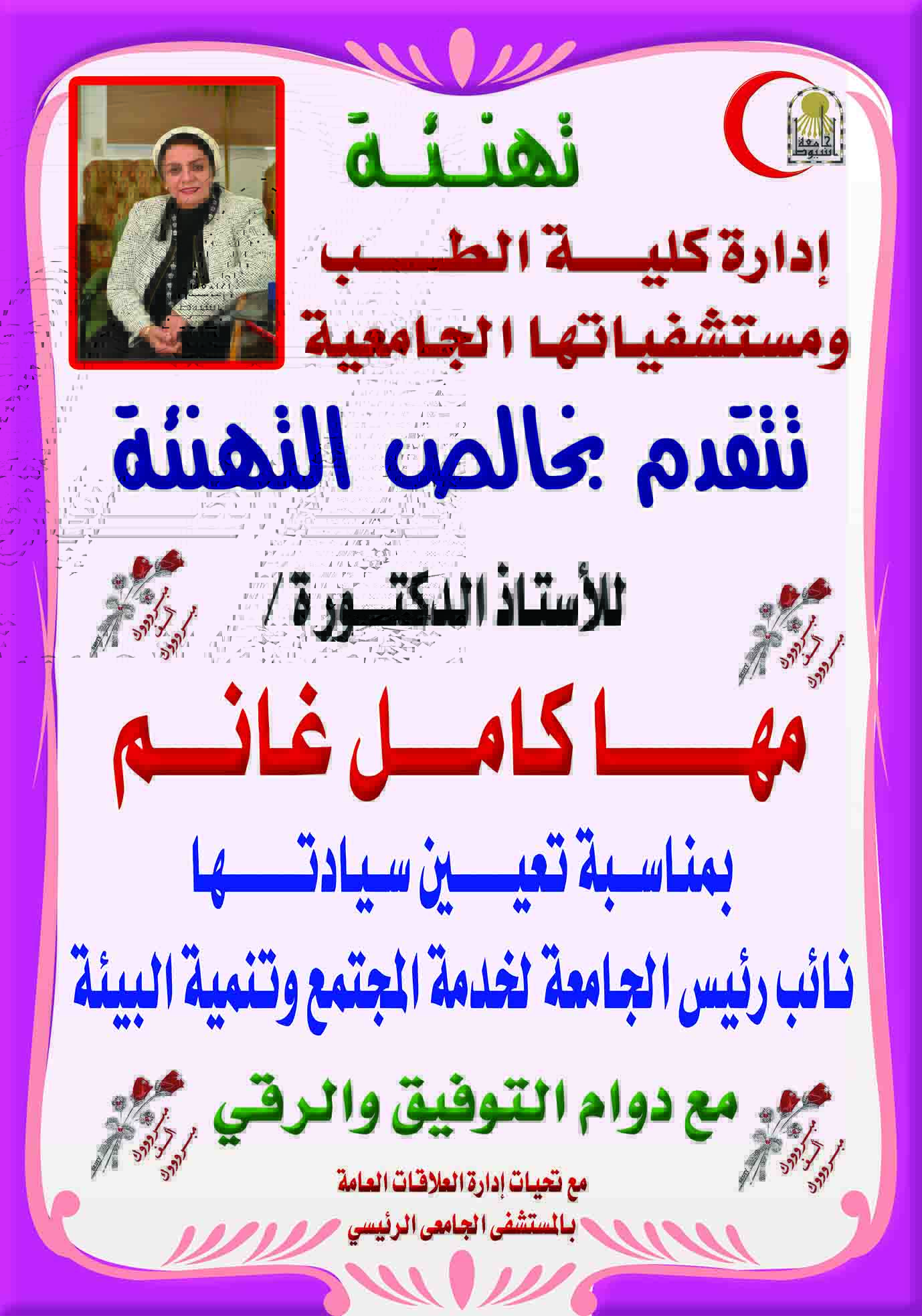 تهنئة 21 مارس 2019 تهنئة أ . د / مها كامل غانم لتعيين سيادتها نائب رئيس الجامعة لخدمة المجتمع والتنمية البيئة
