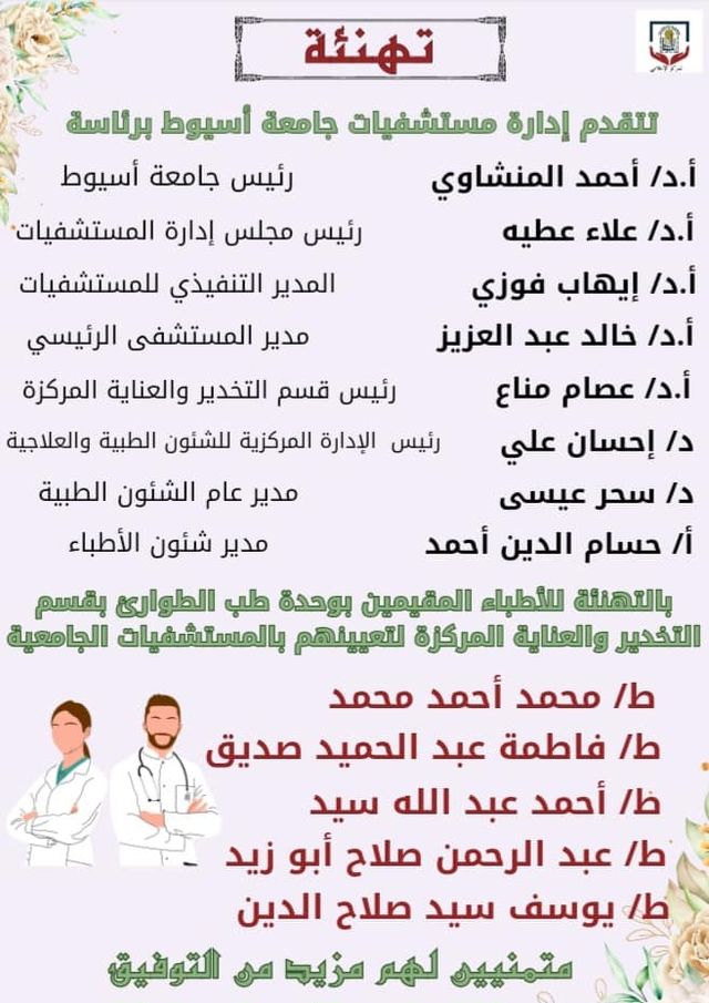 مستشفيات جامعة أسيوط تقدم التهنئة لرجال الشرطة في عيدهم الـ (٧٤)