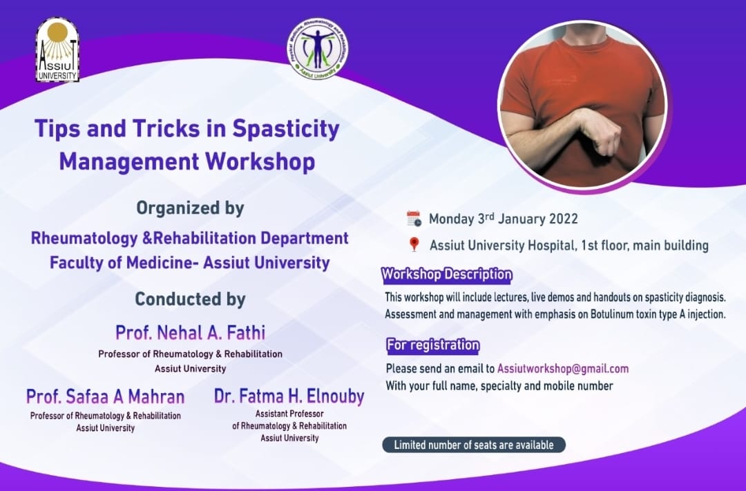 ورشة العمل لقسم الروماتيزم والطب الطبيعى يوم الثلاثاء 3 يناير 2022 م بقاعة المستشفى الجامعى الرئيسي 1 يناير 2022 ورشة العمل لقسم الروماتيزم والطب الطبيعى يوم الثلاثاء 3 يناير 2022 م بقاعة المستشفى الجامعى الرئيسي