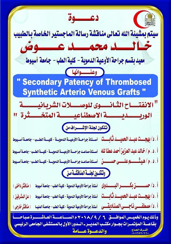 Master Thesis of Doctor / Khaled Mohamed Awad the Doctor of Vascular Surgery 4 September 2018 Master Thesis of Doctor / Khaled Mohamed Awad the Doctor of Vascular Surgery