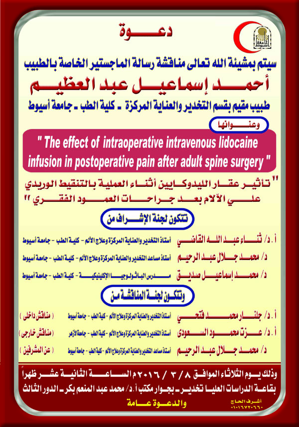 Ph.D. Master of doctor / Ahmed Ismael Abdel-Azim the doctor of Anesthesia and Intensive Care Department
