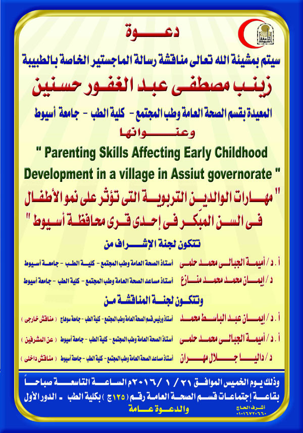 Ph.D. Master of doctor / Zainab Mostafa Abdel-Ghafour Hassanain the Demonstrator of Public Health and Community Medicine Department