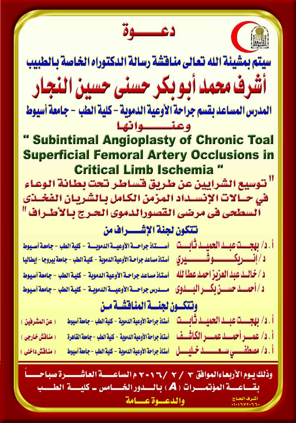 Ph.D. Thesis of doctor / Ashraf Mohamed Abo-Bakr Hosny Hussain Elnaggar the Assistant Lecturer of Vascular Surgery