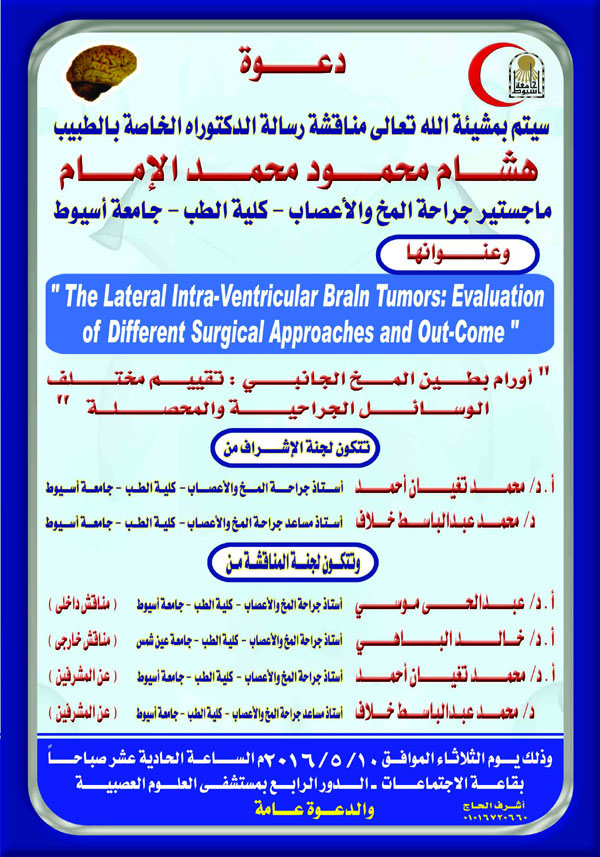 Ph.D. Thesis of doctor / Hesham Mahmoud Mohamed El-Imam the Assistant Lecturer of Neuro Surgery