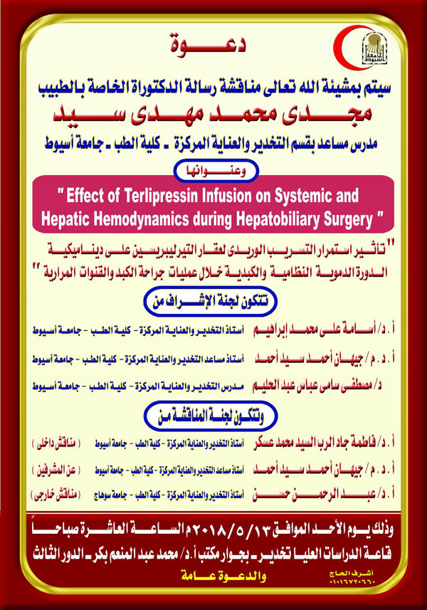 Ph.D. Thesis of doctor / Magdy Mohamed Mahdy Sayed the Assistant Lecturer of Anesthesia and Intensive Care