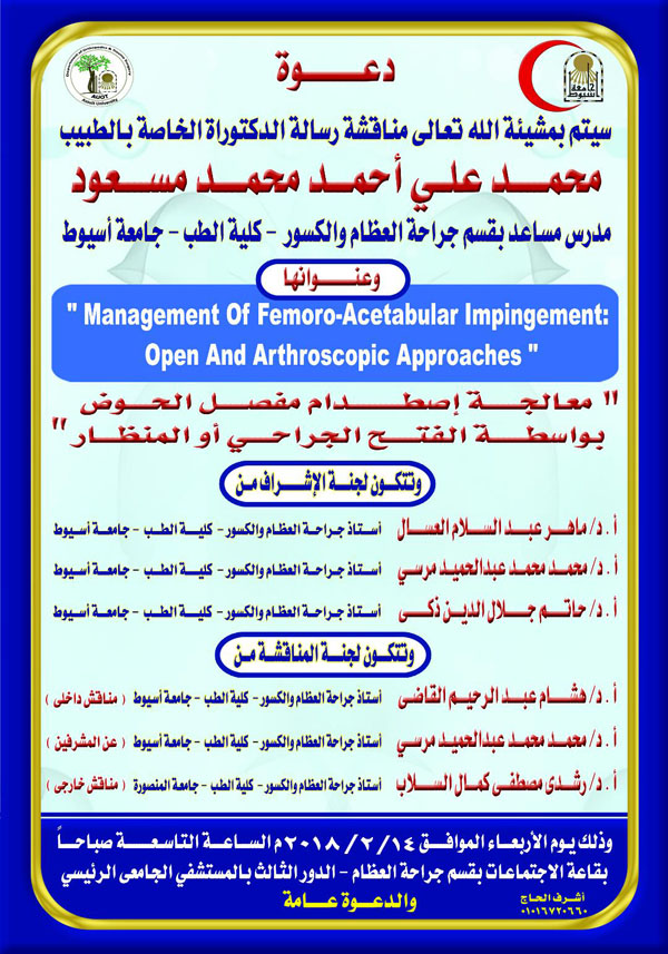 Ph.D. Thesis of doctor / Mohamed Ali Ahmed Mohamed Masoud the Assistant Lecturer of Orthopedic Surgery and Traumatology