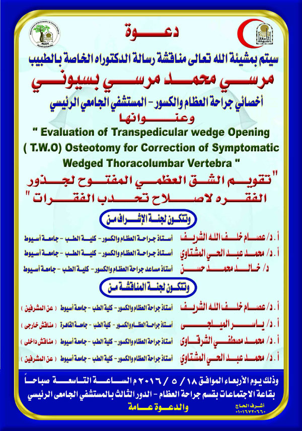 Ph.D. Thesis of doctor / Morsy Mohamed Morsy Basiony the Assistant Lecturer of Orthopedic Surgery and Traumatology