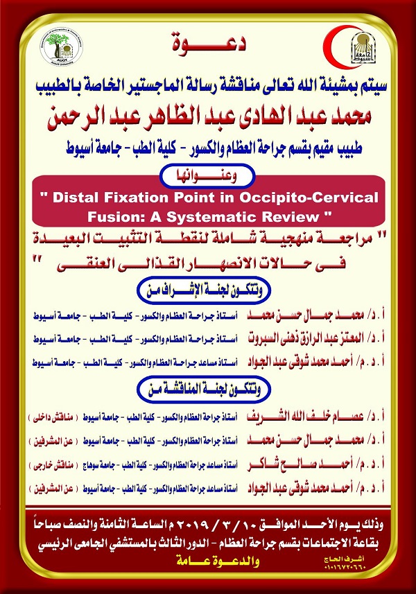 Master Thesis of Doctor / Mohamed Abdel-Hadi Abdel-Zaher Abdel-Rahman the Doctor of Orthopedic Surgery and Traumatology