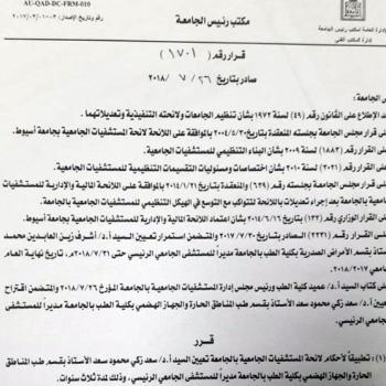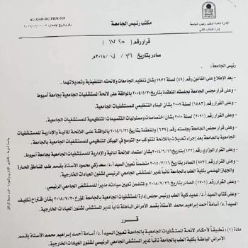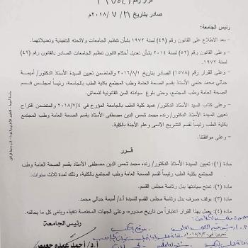 Appointment of Prof. Asamna Ahmed Ibrahim Mohamed, Professor of Internal Medicine as a Director of the main hospital for outpatient clinics