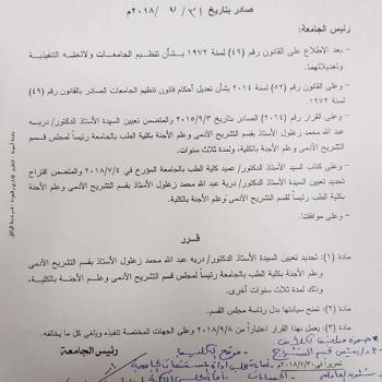 Appointment of Prof. Doria Abdullah Mohamed as Chairman of Anatomy Department