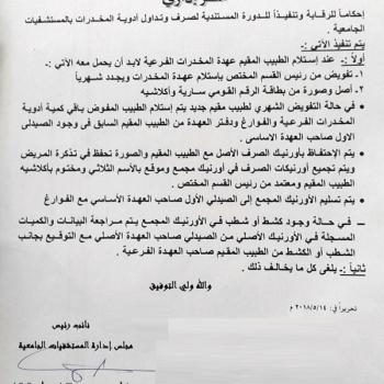 Administrative Statement about the disbursement and circulation of drugs in University Hospitals