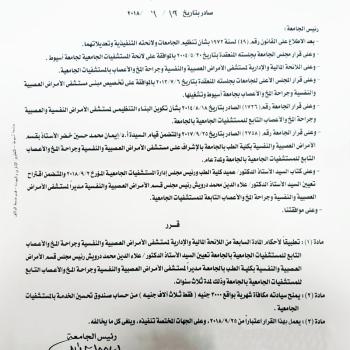 Appointing Prof. Alaa El-Din Mohamed Darwish, Chairman of the Neurology and Psychiatry Department, Director of Neurology, Psychiatry and Neurosurgery Hospital