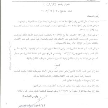 Continue to Appointment of Dr. Maher Mokhtar Ahmed Farghaly, the Professor of Pediatrics as as the…