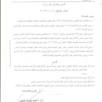 Continue to Appointment of Dr. Ashraf Zein El Abidine Mohamed, the professor of Chest Diseases as Director of the main University Hospital