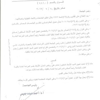 Continue to Appointment of Dr. Hesham Ali Ryad Shaaban, the Professor of General Surgery as as the…