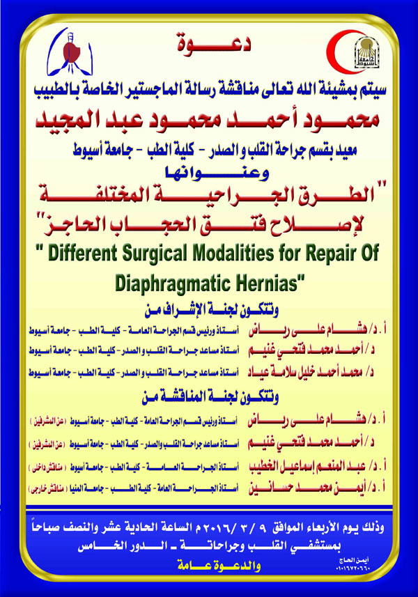 Ph.D. Master of doctor / Mahmoud Ahmed Mahmoud Abdel-Majid the doctor of Cardio-Thoracic Surgery Department