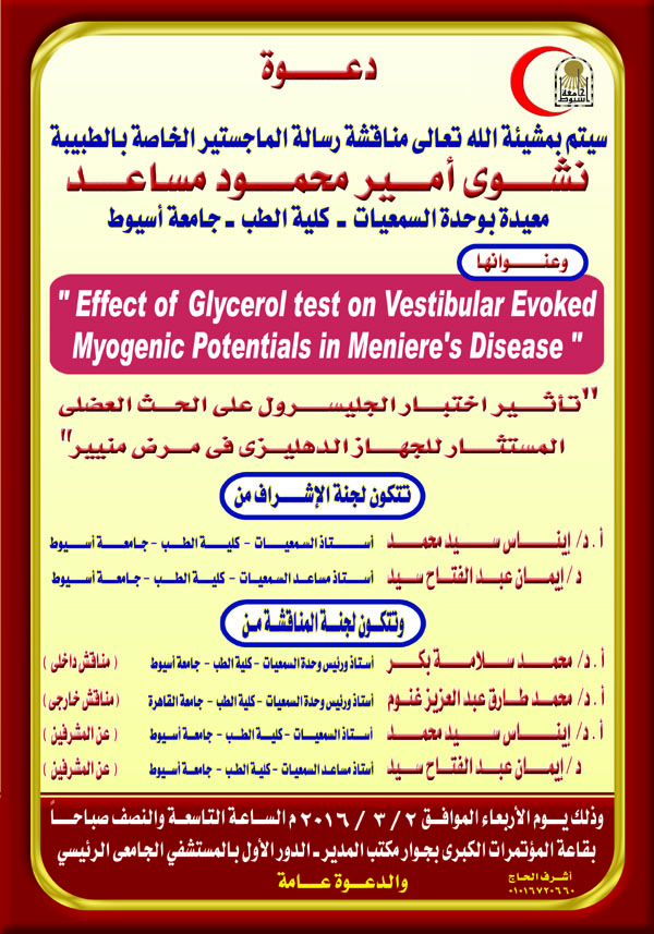 Ph.D. Master of doctor / Nashwa Amir Mahmoud Mosaed the Demonstrator of Ear, Nose and Throat Department