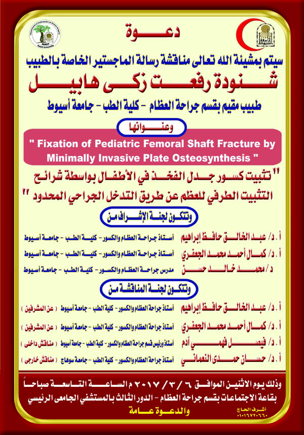 Ph.D. Master of doctor / Shenoda Refaat Zaki Khalil the doctor of Orthopedic Surgery and Traumatology Department