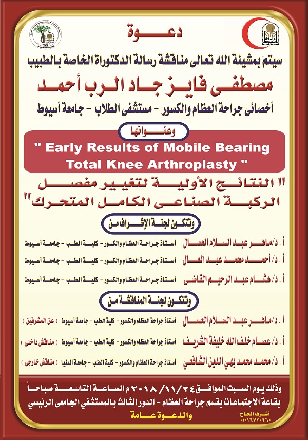 Ph.D. Thesis of doctor / Mostafa Fayez Gad-Elrab Ahmed the Assistant Lecturer of Orthopedic Surgery and Traumatology
