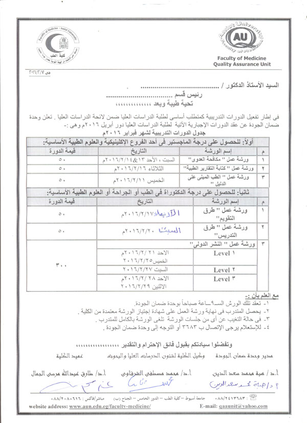Training Courses Timetable of Post Graduate Students for Feb. Month 9 February 2016 Training Courses Timetable of Post Graduate Students for Feb. Month