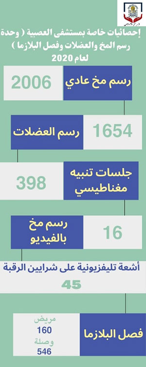 احصائيات خاصة بمستشفي العصبية (وحدة رسم المخ والعضلات وفصل البلازما) لعام 2020