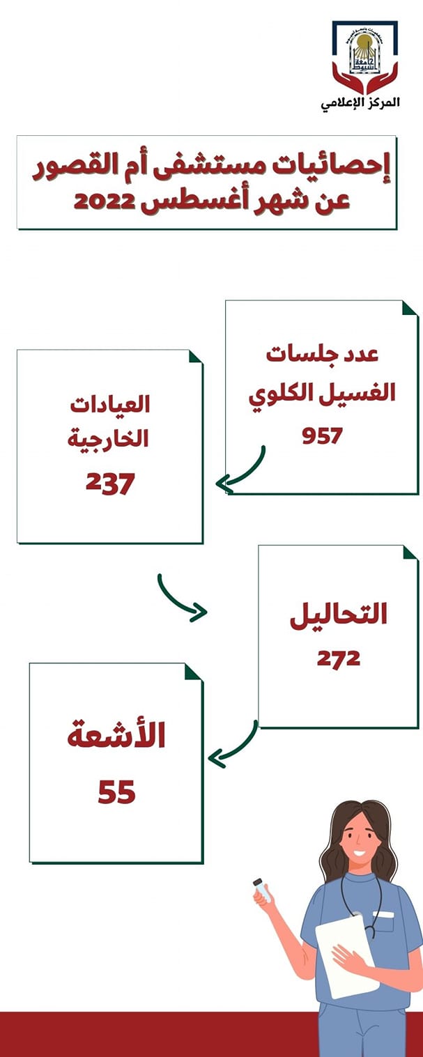 مستشفى أم القصور الجامعي تجري ٩٥٧ جلسة غسيل كلوي خلال أغسطس الماضي