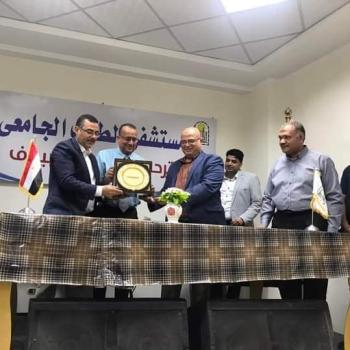 مستشفى الطلاب بجامعة أسيوط تكرم الدكتور إيهاب فوزي تقديرا لجهوده