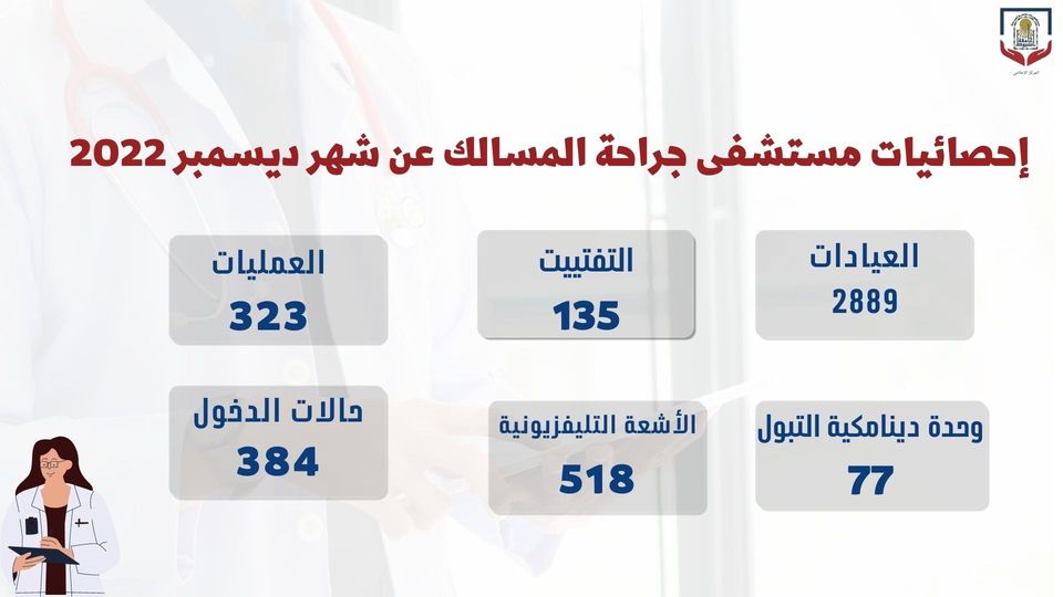 مستشفى جراحة المسالك البولية يستقبل ٢٨٨٩ حالة خلال ديسمبر الماضي