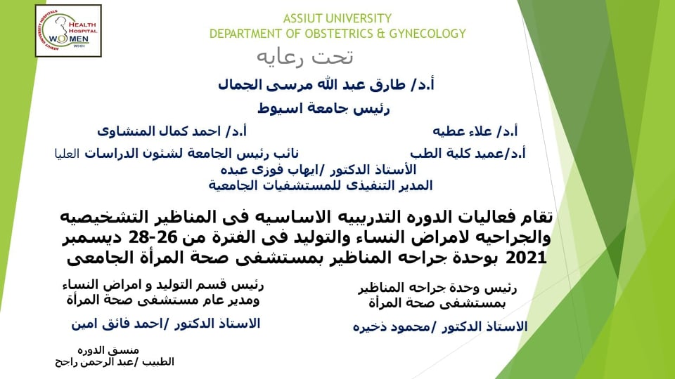 ألدورة التدريبية الاساسية في المناظير التشخيصية والجراحية لأمراض النساء والتوليد في الفترة من26-28 ديسمبر2021