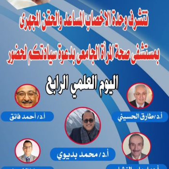 تعقد غدا وحدة الاخصاب المساعد والحقن المجهري بمستشفى صحة المرأة الجامعي اليوم العلمي الرابع، والذي…