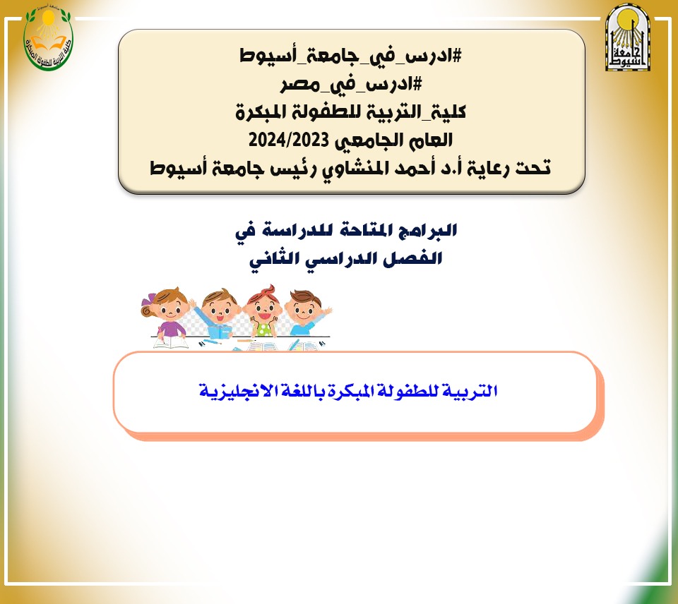 متاح الآن التقديم للدراسة من الفصل الدراسي الثاني بكلية الطفولة المبكرة جامعة أسيوط حتي 31/1/2024 2 يناير 2024