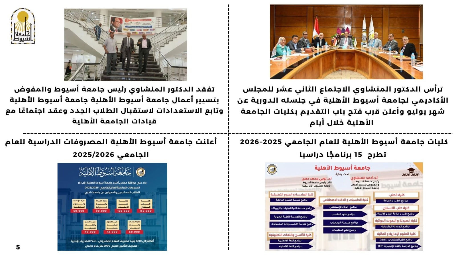 أبرز أنشطة وفعاليات جامعة أسيوط خلال أسبوع في الفترة من 26  يوليو حتى  31  يوليو 2025