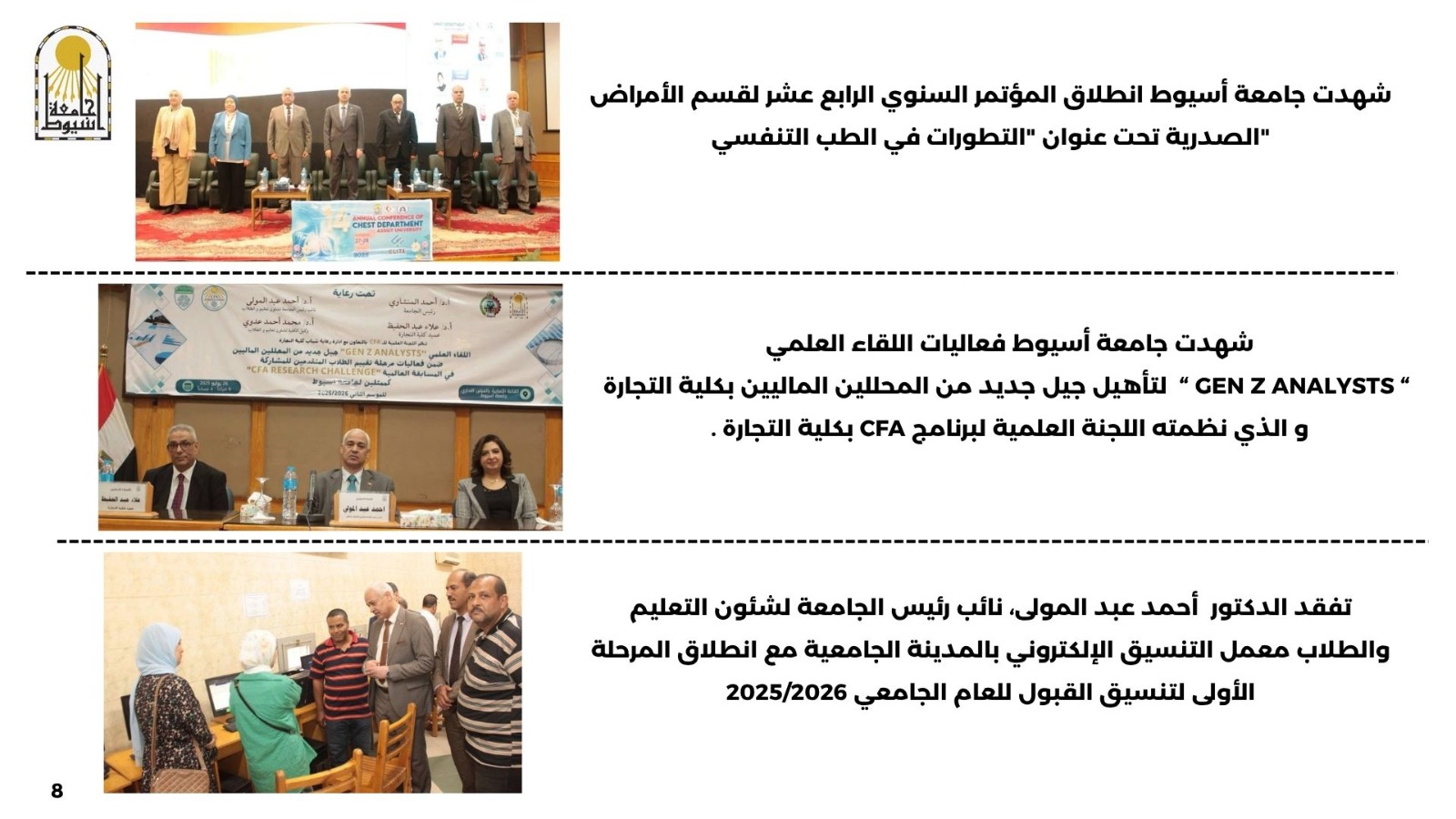 وللمزيد من الأخبار والتفاصيل، تابعوا الصفحات الرسمية لجامعة أسيوط.